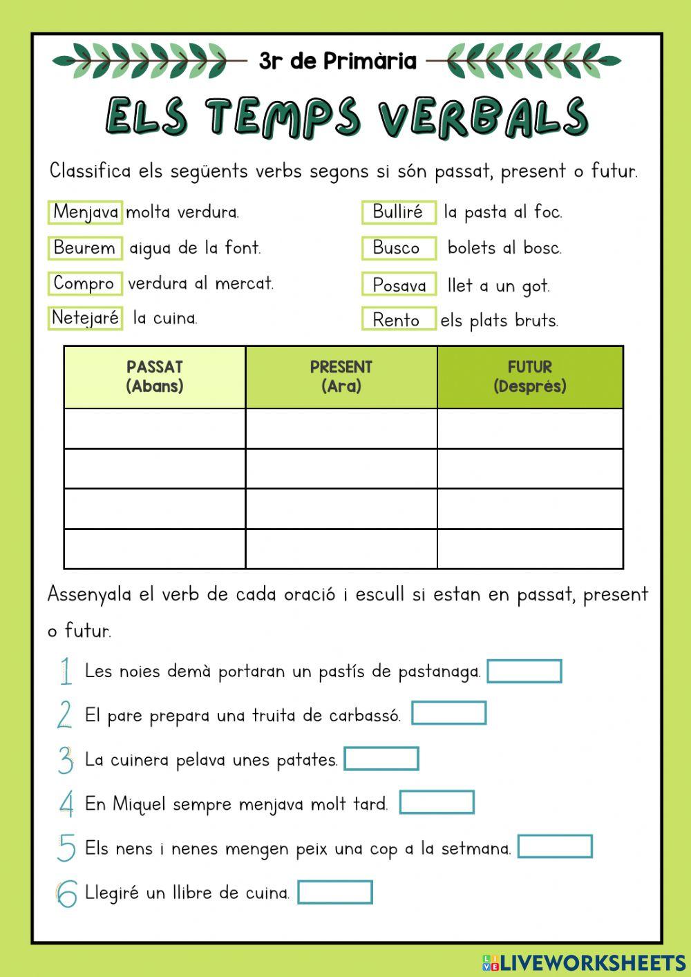 TERCER PRIMÀRIA- Català i Castella, EL VERB (EL TEMPS VERBAL)